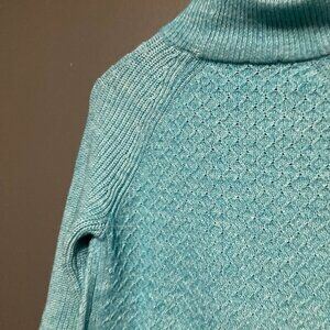 Talbots Women Sweater Pullover Size M Blue Turtleneck Quilted Knit Classic