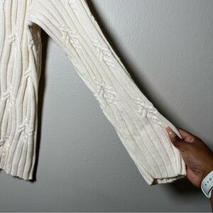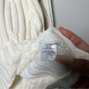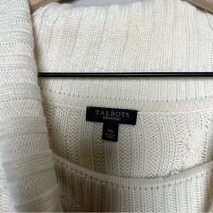 Talbots Women Sweater XL Cream Chunky Cable Fisherman Knit Cowl Angora Cotton
