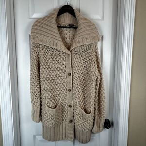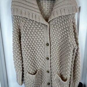 Talbots Women Sz M Ivory Cardigan Chunky Wool Alpaca Blend Sweater Wide Collar U