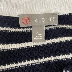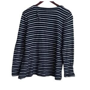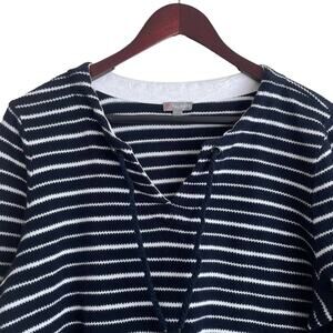 Talbots Women Top L Navy Striped Keyhole Tie Coastal Nautical Travel Beachy
