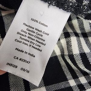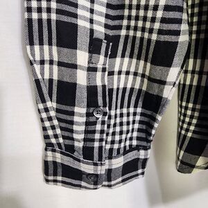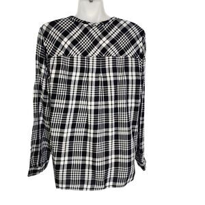Talbots Women Top Medium Black White Plaid Popover Split Neck Long Sleeve Blouse