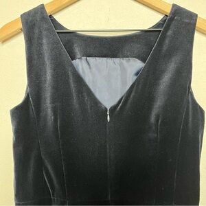 Talbots Women Velvet Velour Cocktail Dress 8 Navy Blue Sleeveless Mini Sheath
