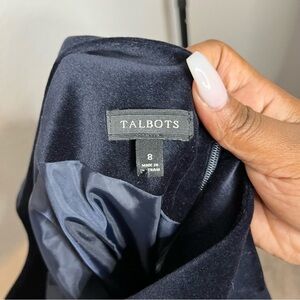 Talbots Women Velour Dress 8 Navy Blue Sheath Holiday Formal Knee Length