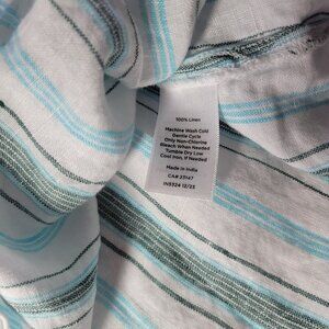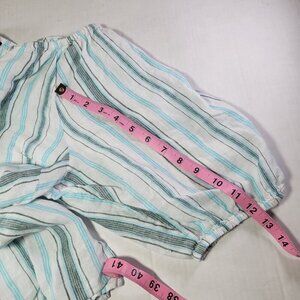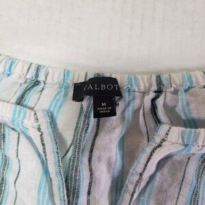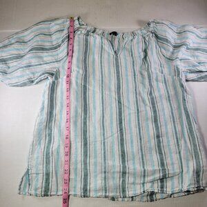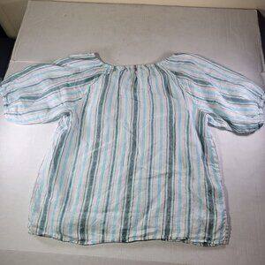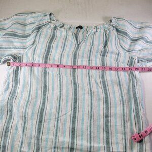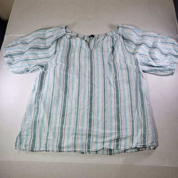 Talbots Women White & Blue Striped Casual Linen Short Puff Sleeve Blouse Size M