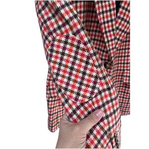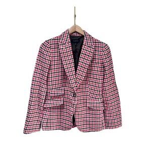 Talbots Women Wool Blend Orange Pink Plaid Tweed Blazer Jacket Size 4
