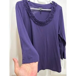 Talbots Women XL/P Purple Silk Blend Fur Faux Scoop Neckline Top Casual Chic