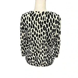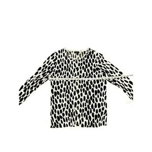 Talbots Women Black White Button Front 3/4 Sleeve Cardigan Sweater Size Medium