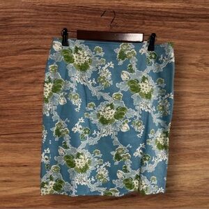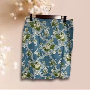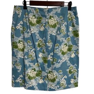 Talbots Women's Floral Pencil Skirt Size 10 Blue Green Cottagecore Cotton Blend