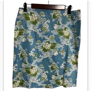 Talbots Women's 10 Blue Green Colorful Floral Pencil Skirt Spring Summer Cotton
