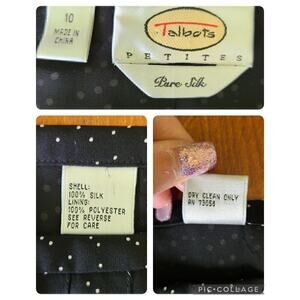 Talbots Womens 10 Petite Black White Polka Dot 100% Silk Skirt Lined Pleated