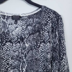 Talbots Womens 100% Merino Wool Pullover Sweater Black Cream Medium Snake Print Long Sleeve Lightweight