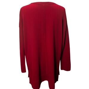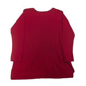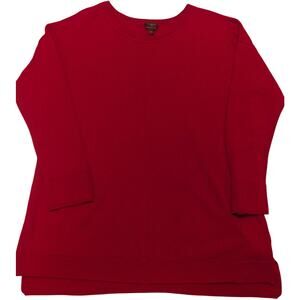 This Talbots Woman red pullover sweater in size 1X is crafted from 100% pure merino wool for a luxurious feel and breathable warmth. With a longline, relaxed fit and classic crew neckline, this piece blends timeless style and cozy comfort. Ideal for layering in fall and winter or wearing solo for a polished cold-weather look. This sweater pairs well with both officewear and casual ensembles. The rich red hue makes it a perfect seasonal piece, especially for holiday wear.