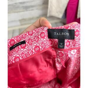 Talbots womens 12 pink white jacquard ankle pants floral geometric print Heritage trousers stretch dress pants women’s size 12 Talbots patterned pants spring summer bright chic polished workwear classic tailored ankle trousers elegant casual dressy boutique style feminine printed pants wardrobe essential