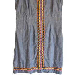Talbots Women's 14 Blue Sheath Dress Linen Blend Embroidered Sleeveless Lined