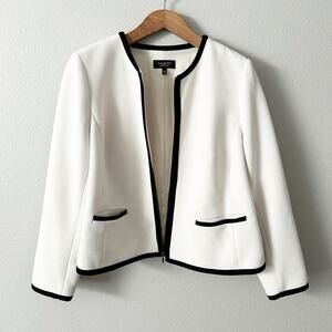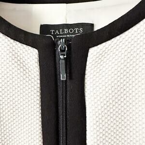 Talbots Women’s 18wp Cream Knit Black Trim Zip Jacket Blazer Size 18wp