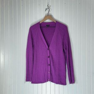Talbots Women’s 1X Purple Cable Knit Button Cardigan Sweater Preppy Classic Cozy