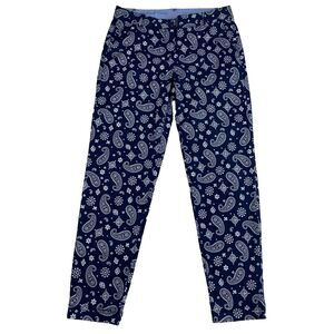 Talbots Womens 2 Pants Navy Blue Paisley The Weekend Chino Cotton Blend Stretch