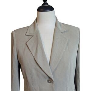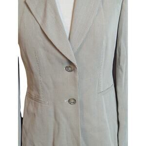 Talbots Women's 2 Petite Blazer Tan & Cream Striped Lined Double Button