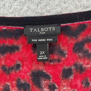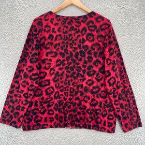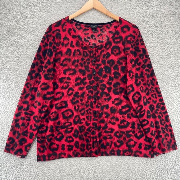 Talbots Womens 2X Plus Red Leopard Print Merino Wool Button Up Cardigan StretchButton up