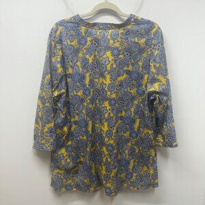 Talbots Womens 2X Yellow & Blue Floral Print Blouse With 3/4 Sleeves