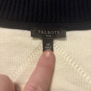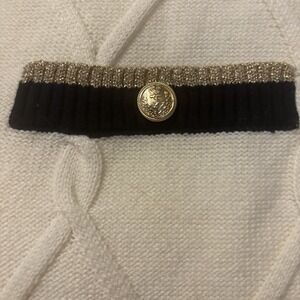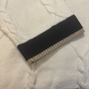 Talbots Women's 2XL Cream With Black Accents Cable Knit V-Neck Sweater Gold Trim