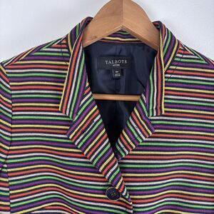 Talbots Women's 6P Petite Jacket Blazer Pink Blue White Green Striped Rainbow