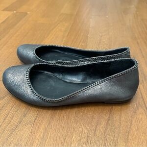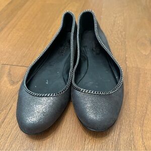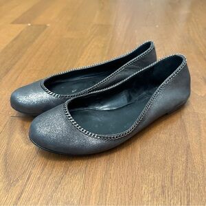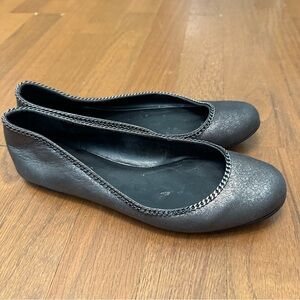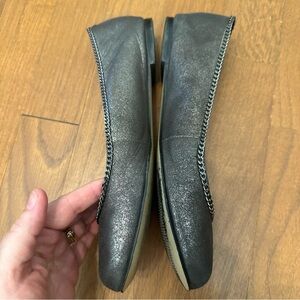 Talbots Women's 8B Pewter Metallic Leather Ballerina Flats With Chain Accent