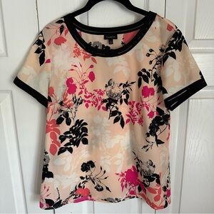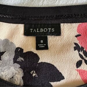 Talbots Womens AOP Floral Cut Out Short Sleeve Pullover Top Size S Career