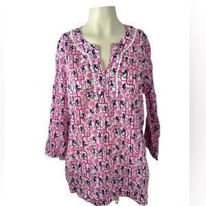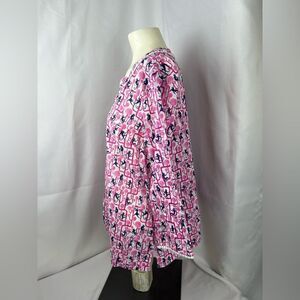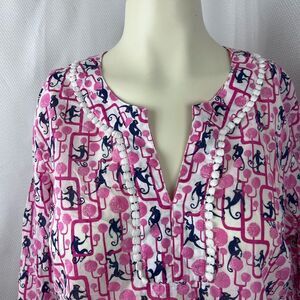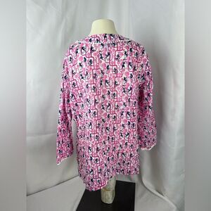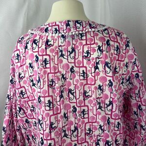 Talbots Womens Abstract Monkey Print 3/4 Sleeve V-Neck Blouse Top Pink Sz Medium