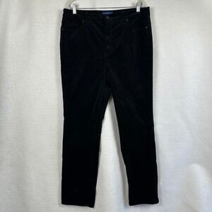 Talbots Women's Black Corduroy Pants High Waist Straight Leg Size 14 Classic