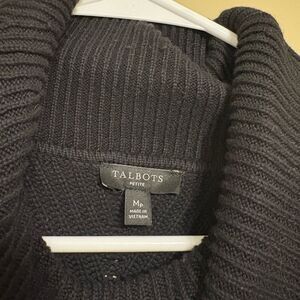 Talbots Women’s Black Cotton Blend Ribbed Cowl Neck Sweater Petite Medium