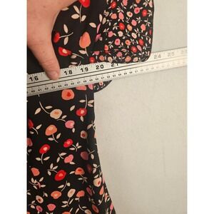 Keywords: Talbots dress, floral dress, black floral dress, size 14 dress, womens dress, party dress, cocktail dress, career dress, ruffle sleeve dress, short sleeve dress, womens floral dress, black dress, pink floral, red floral