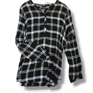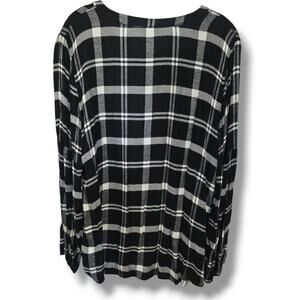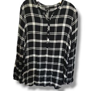 Classic Talbots black and white plaid shirt with a 3/4 button front and relaxed fit. Made from soft rayon for lightweight comfort. Size large, pre-owned and in great condition. Perfect for layering or casual everyday wear.