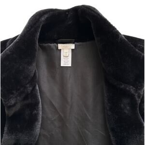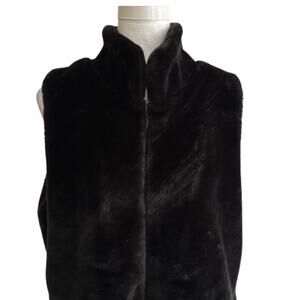 Talbots Black Faux Fur Plush Super Soft Hand Pockets Coat Vest