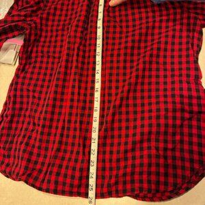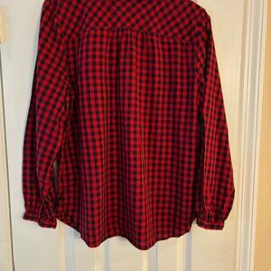 Talbots Women's Black Red Plaid Cotton Long Sleeve Button Ruffle Collar Shirt L