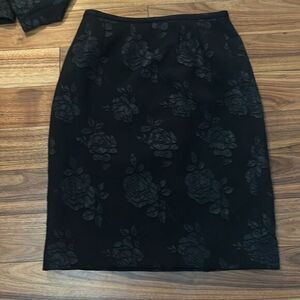 Talbots Womens Black Rose Textured Petite Blazer Size 8 Pencil Skirt Size 10