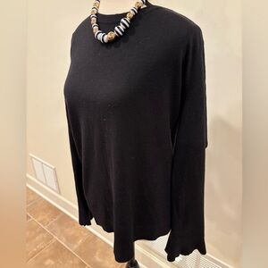 Talbots Women’s Black Ruffle Long Sleeve Wool Blend Sweater, size large