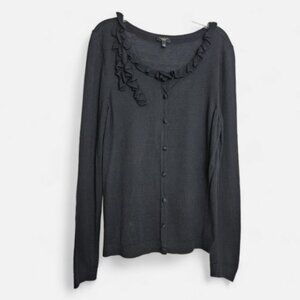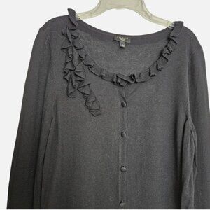 Talbots Women's Black Silk Blend Ruffle Cardigan Sweater Size MP EUC