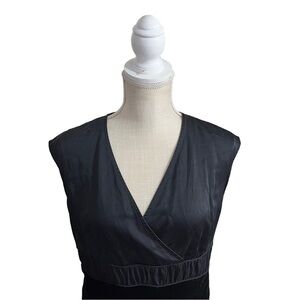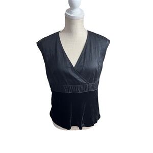 Talbots Womens Black Silk & Rayon Faux Wrap Sleeveless V-Neck Blouse Size 10 Lux