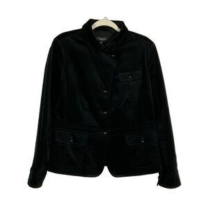 Elegant and versatile, this Talbots women's black velvet peplum blazer jacket in size 12 offers a polished look for professional settings.