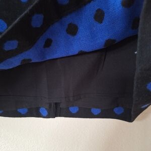 Talbots Womens Black W/Blue Polka-dot Wool Blend Knee Length Lined Back zip closure No stretch Skirt Size 14 Waist flat lay 17" length from waist to hem 24" measurements are approximate