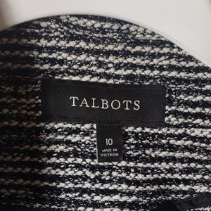 Talbots Womens Black & White Striped Heavy Cardigan Sweater w/ Pockets Size 10