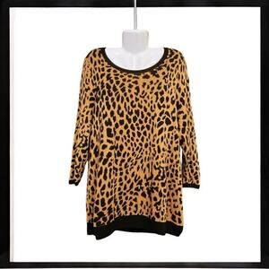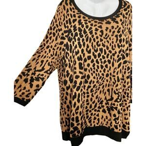 Talbots Women's Black/Brown Cheetah Print Pullover Sweater Tunic | Size 3X