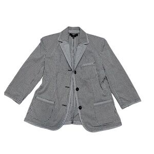 Talbots Womens Blazer Jacket Black White Gingham Plaid Button Front Stretch 8P
