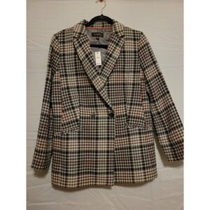 Talbots Women's Blazer Jacket Regular Size 12 Plaid Gray/Pink NWT