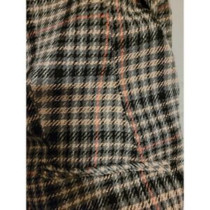 This Talbots Women's Blazer Jacket is a stylish pea coat in a size 12, featuring a gray, yellow, white and pink plaid pattern. Made of a cotton blend, it has a button closure, long sleeves, and a mid-length design. The jacket is lined with polyester, has a collared neckline, and includes pockets. Perfect for business occasions in winter, fall, or spring, this classic fit coat has a breathable fabric and accents of buttons for a sophisticated look. BRAND NEW WITH TAGS!