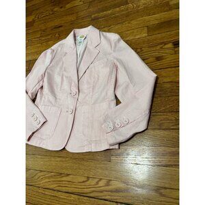 Talbots Womens Blazer Jacket Sz 6p Petite 6 Pink White Pinstriped Stretch Cotton