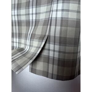 Talbots Women's Blazer Plaid Tan White Green Satin Size 8 3/4 Sleeve Cottagecore