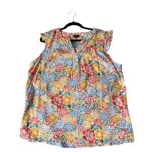 Talbots Women's Blossom Garden Shell Top White Multi Floral Print Cotton Size XL