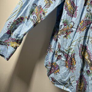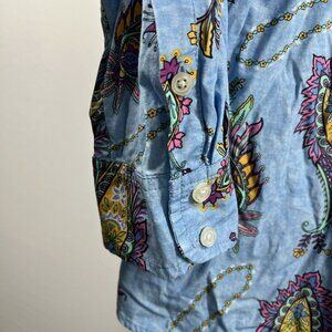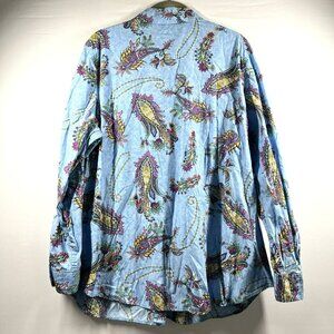 Talbots Women's Blouse Size 1X Blue Colorful Paisley Long Sleeve Button Up Top